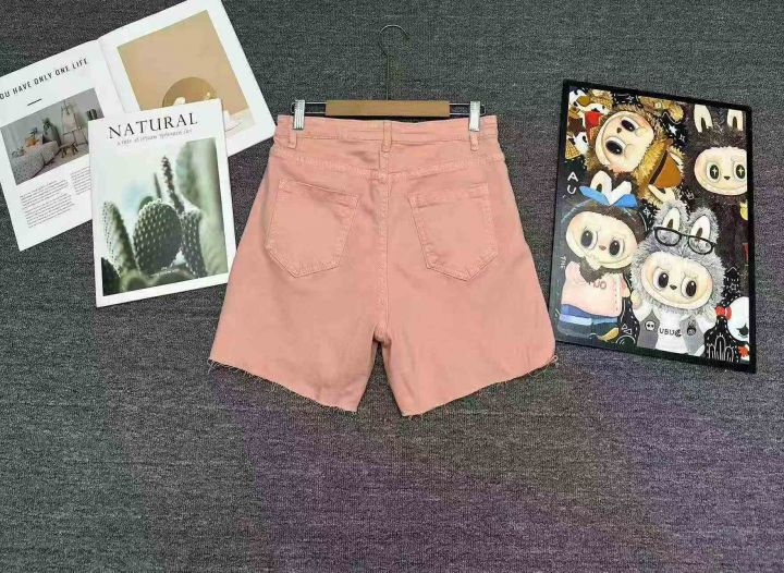 天猫在售款128件左右高品质女装高腰显瘦粉色系牛仔短裤,面料柔软高弹力,单款单色,S-XL,独立包装