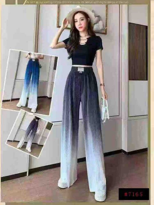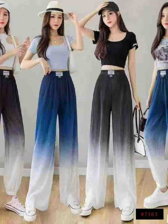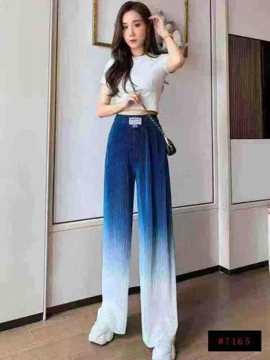☕️新款潮ins阔腿裤女褶皱渐变高腰垂感夏拖地裤693条全清8.8元分货+1 ,码数S到3XL,独立包装单款都是几乎蓝色,外贸热销款渐变色裤子[庆祝][庆祝]@_@