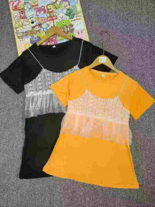 150件女中大童中长款连衣裙夏装洋气女孩韩版短袖蕾丝假两件吊带T恤裙子 单款两色,码数2-7(120-170)独立包装。