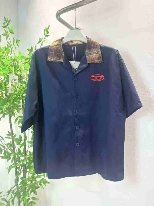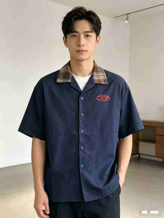 240件左右轻熟风美式复古格领撞色男士短袖衬衫,做工...