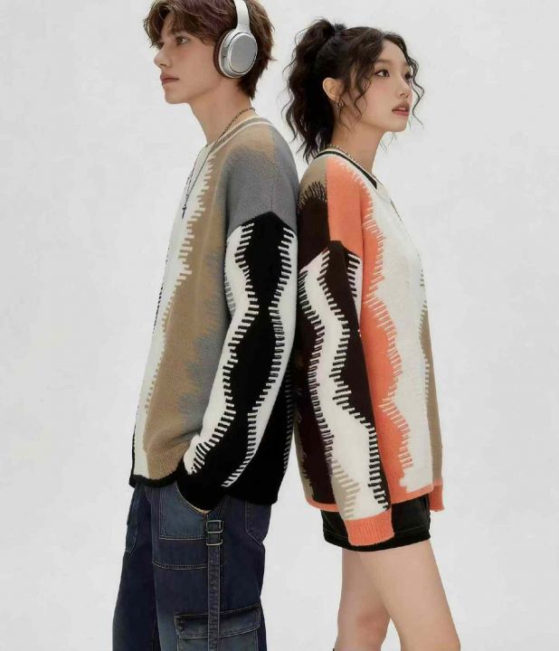 春季新款网红复古潮牌提花设计款套头毛衣,独立包装,...