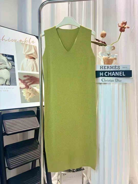 200件左右2026夏季新款法式温柔风约高级感牛油果绿针织无袖中长款背心裙连...