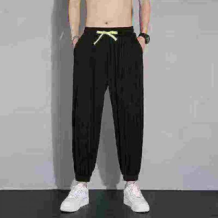 全清6.5元,6538条\'裤子夏季男休闲薄款韩版ins潮牌冰丝条纹运动大码弹力宽松哈伦裤\'分货➕0.5