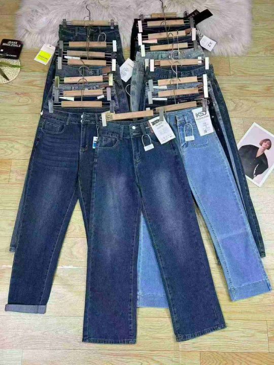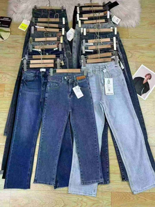 #Vente en gros de jeans pour femmes女士直筒烟管阔...