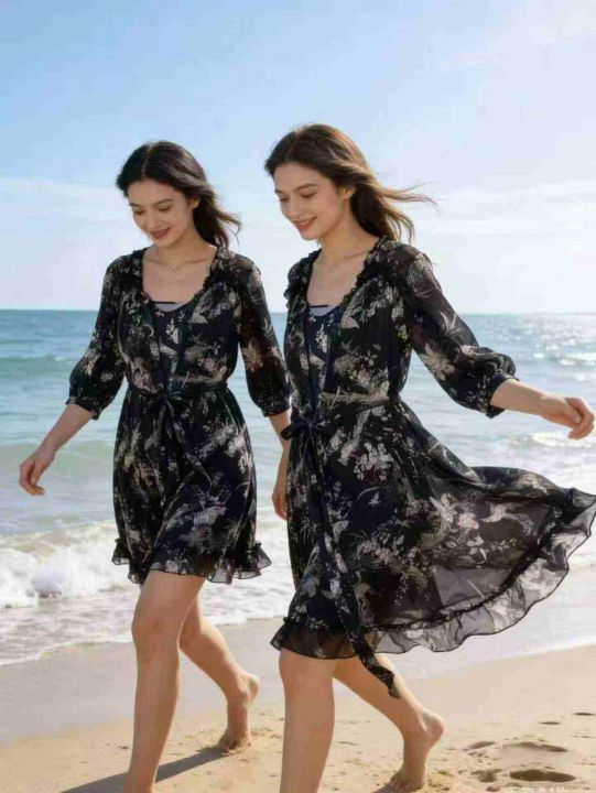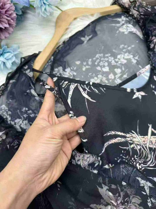 黑色雪纺碎花吊带两件套连衣裙数量:86条 码数:S-XL,独立包装(货号319#25)