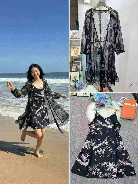 全清价9.9黑色雪纺碎花吊带两件套连衣裙数量:86条 码...