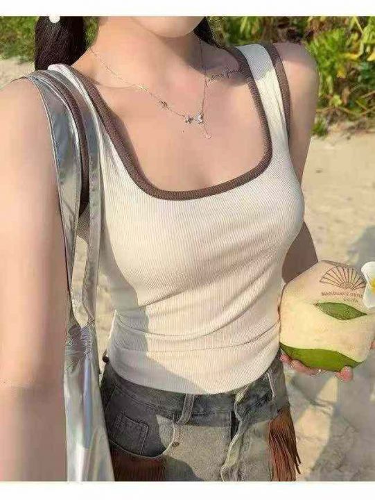 清3.8分货➕0.5新款方领撞色背心女内搭春夏新款宽肩带...