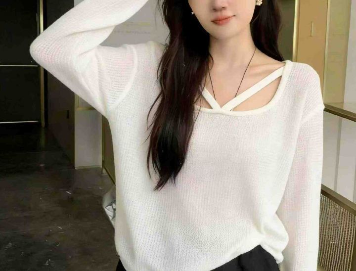 春夏季新款网红镂空设计款宽松百搭长袖针织衫,独立包...
