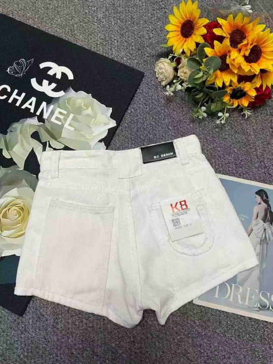 夏季新款网红复古设计款白色牛仔短裤,独立包装带腰卡...