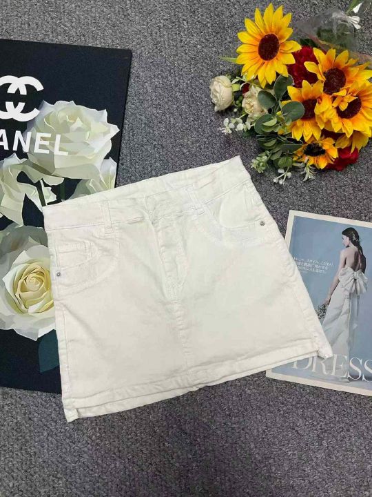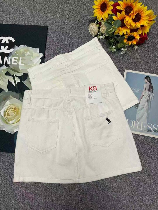 夏季新款网红复古设计款白色牛仔短裙,独立包装带腰卡...
