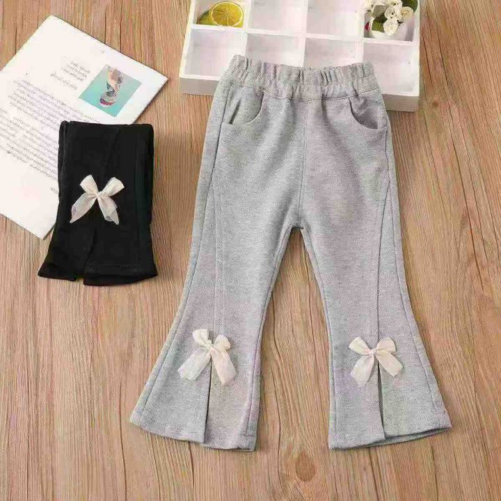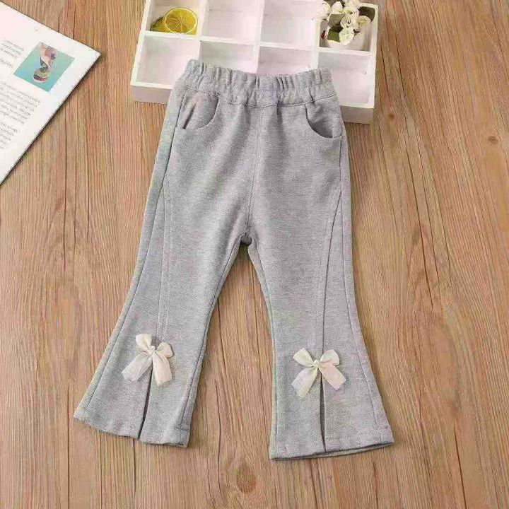 春秋新款女童修身休闲喇叭卫裤 数量150件左右 尺码20-24(相当于130--150) 两个颜色 裤脚开叉 面料厚实柔软 独立包装带吊牌 货品干净整洁
