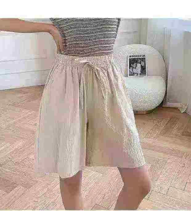 830条高品质棉麻荷叶边松紧腰抽绳设计短裤,宽松休闲大版型,单款多色,品...