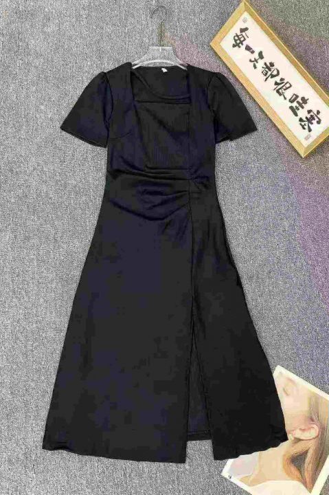 纯欲设计感方领斜条连衣裙375件8.5,面料舒适有弹力,...