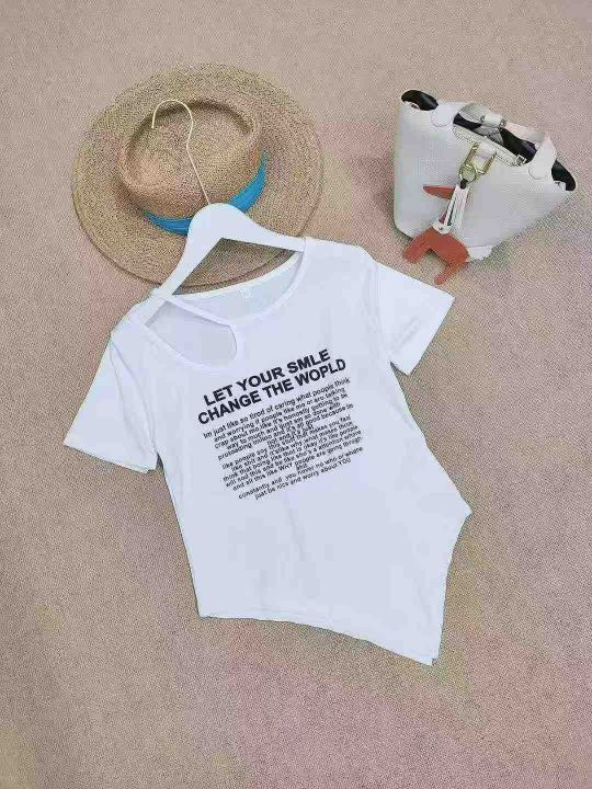 [月亮]:甜辣纯欲风镂空设计感辣妹短袖