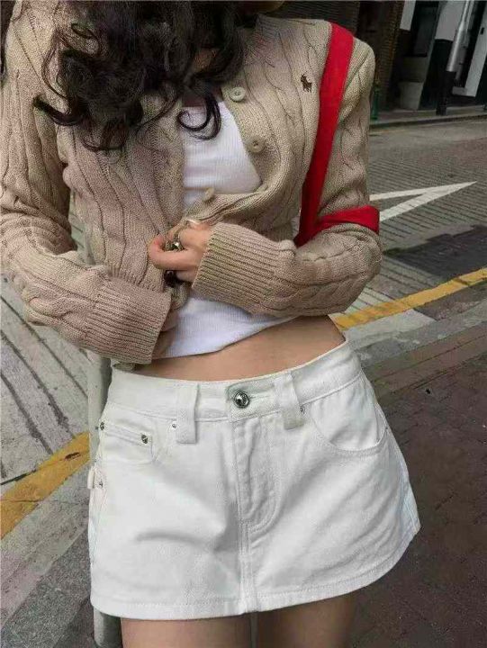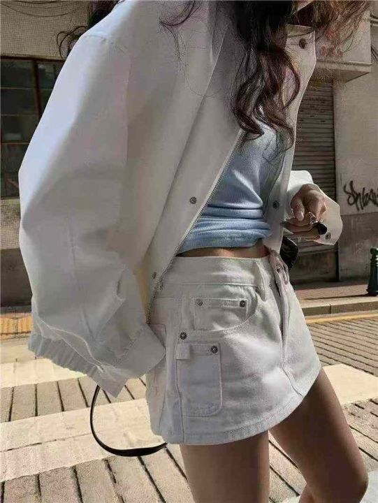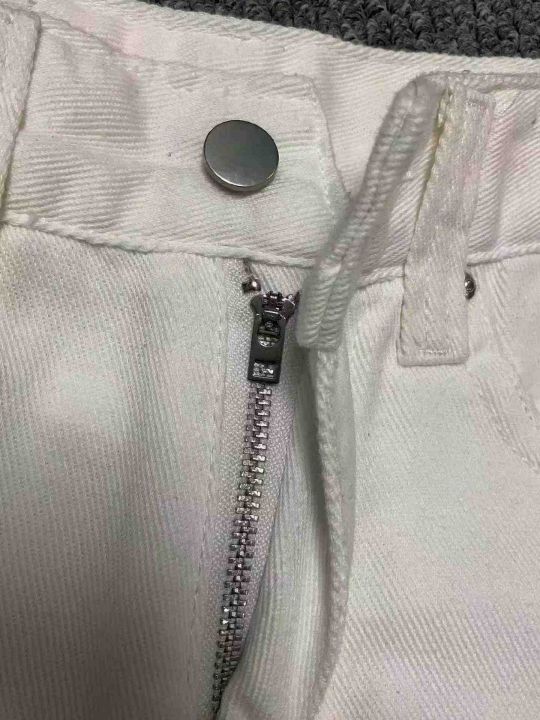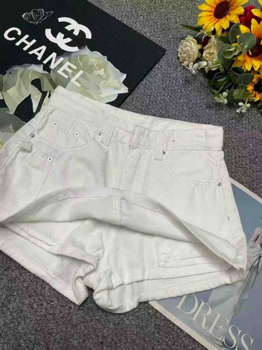 夏季新款网红复古设计款白色牛仔短裤,独立包装带腰卡...