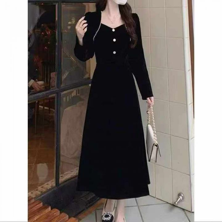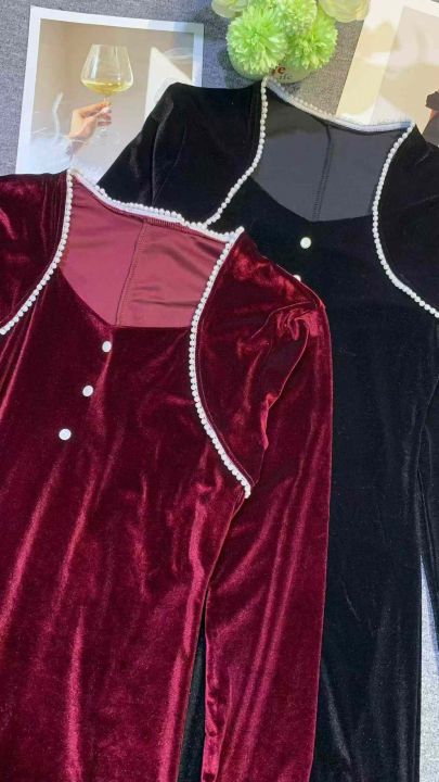 复古轻奢金丝绒方领设计感连衣裙,[爱心]100件左右,单款两个色 ,码数S-4XL,穿80-150斤,万佳档口货,原包装️无瑕疵,[666]实体店品质