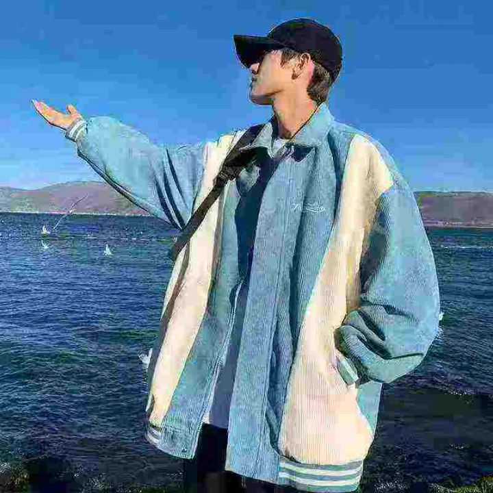 灯芯绒外套男春秋季美式vintage潮牌复古宽松拼接撞色...