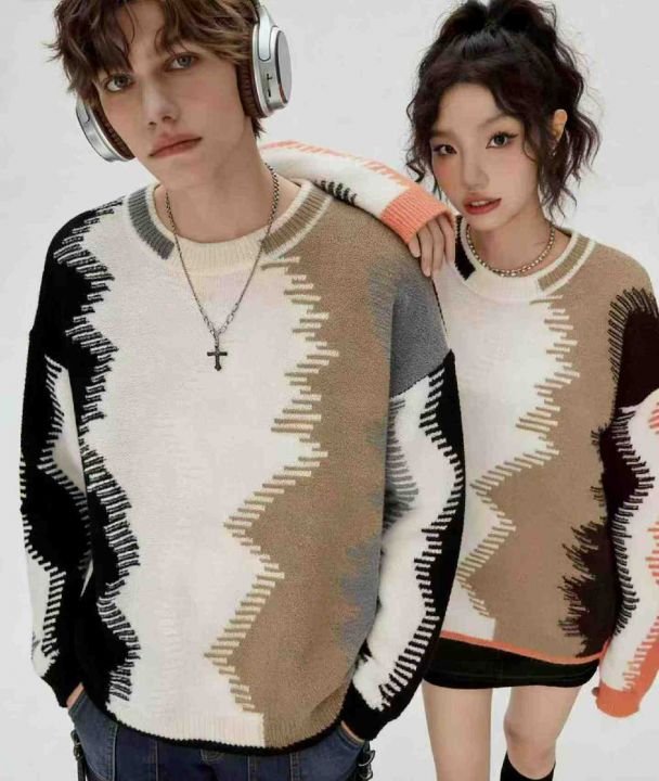 春季新款网红复古潮牌提花设计款套头毛衣,独立包装,...