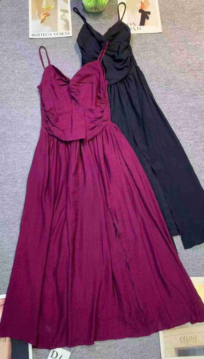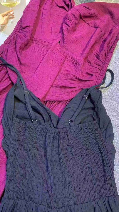 法式扭结设计感镂空褶皱收腰开叉吊带长裙,[爱心]85件左右,款号#6464,码数S-4XL,穿80-150斤,万佳档口货,原包装️无瑕疵,[666]实体店品质