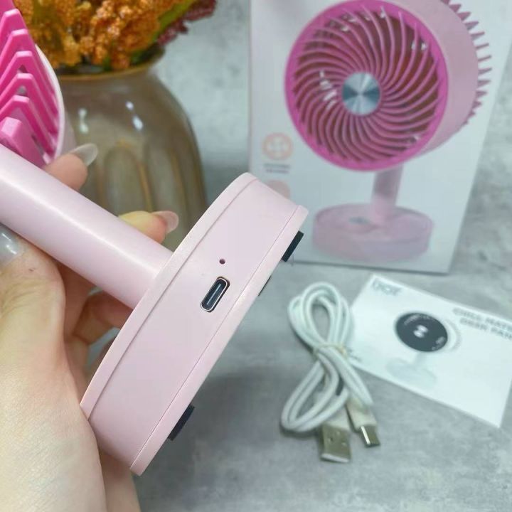 产品卖点:三档风速调节,螺旋风道大风量,粉色马卡龙配色,USB充电,办公居家纳凉神器