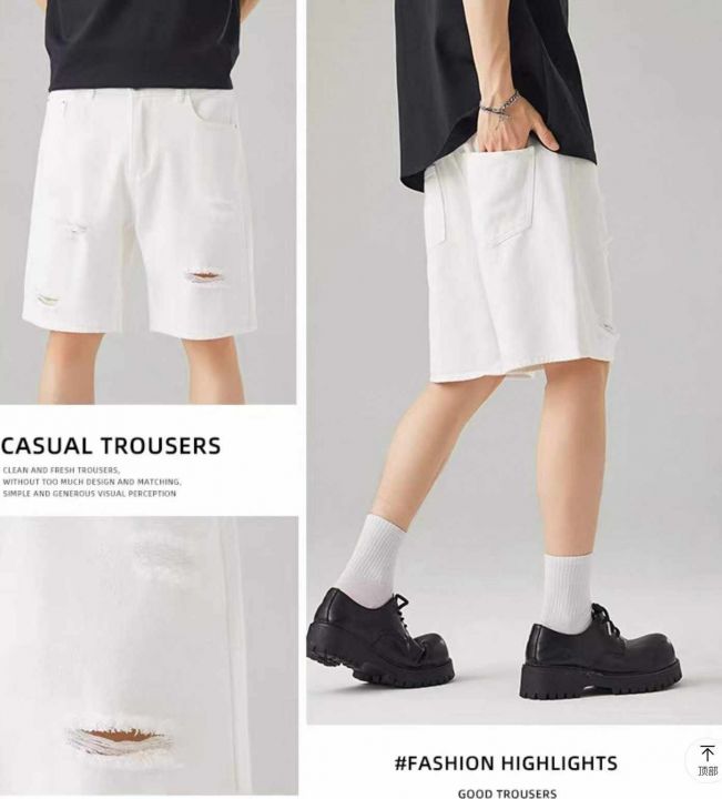 夏季新款网红复古破洞男士洗水棉牛仔短裤,独立包装带...