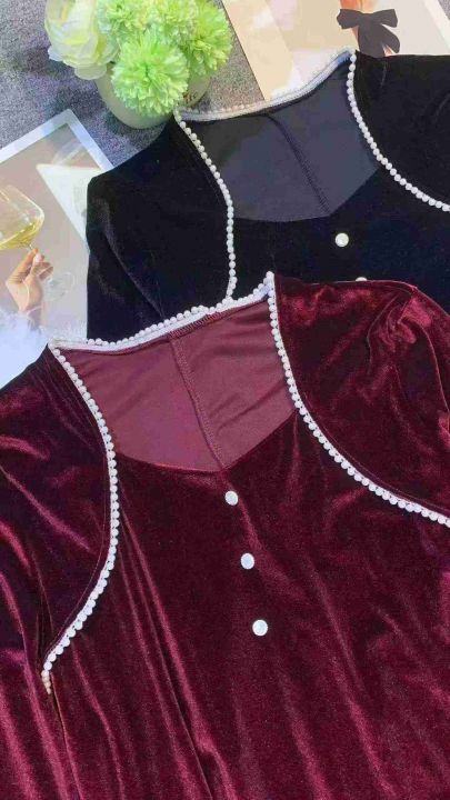 复古轻奢金丝绒方领设计感连衣裙,[爱心]100件左右,单款两个色 ,码数S-4XL,穿80-150斤,万佳档口货,原包装️无瑕疵,[666]实体店品质