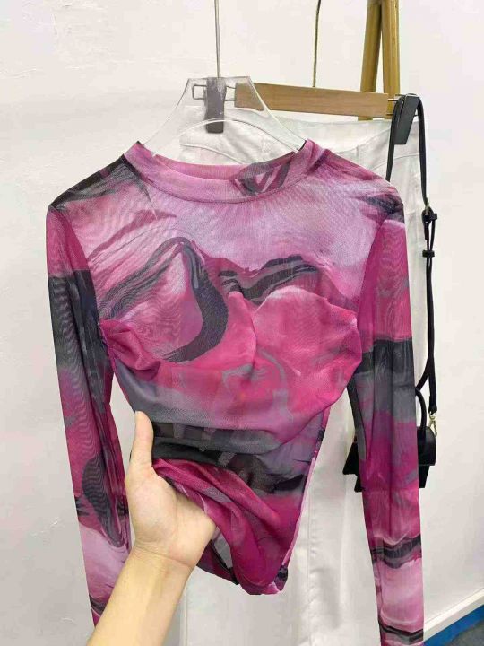 复古晕染网纱辣妹长袖77件7.8,面料舒适有弹力,褶皱...