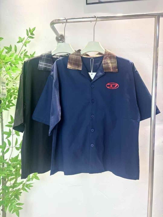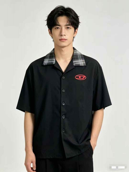 240件左右轻熟风美式复古格领撞色男士短袖衬衫,做工...