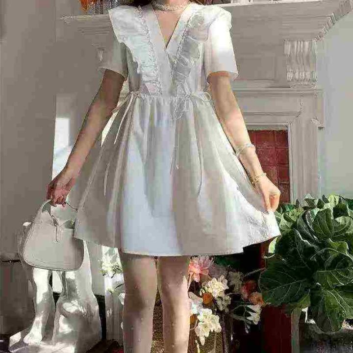 全清10.5荷叶边系带收腰娃娃裙2026年夏季新款时髦公主风褶皱连衣裙 独立包...