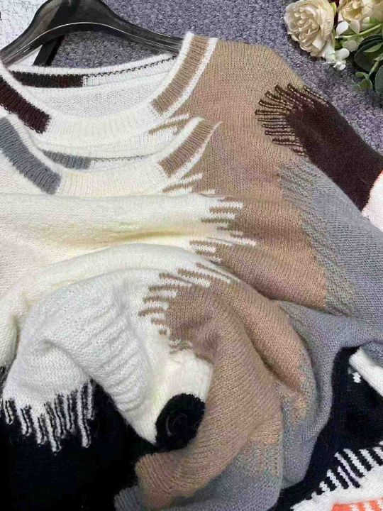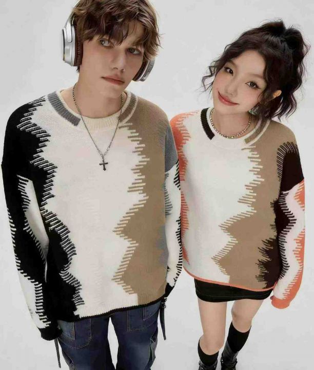 春季新款网红复古潮牌提花设计款套头毛衣,独立包装,...