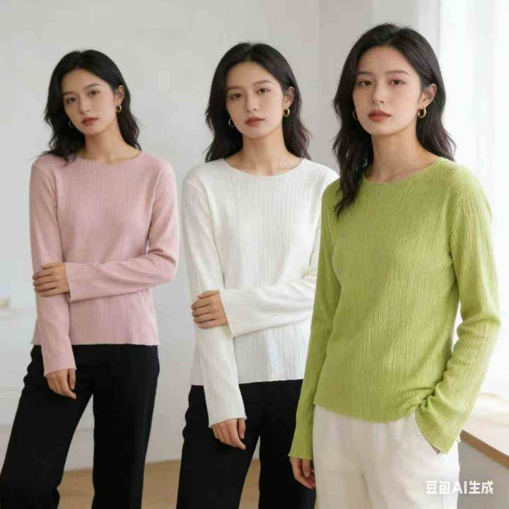 3.5元全清,女士螺纹新款圆领长袖T恤宽松打底百搭短袖开叉休闲洋气时尚,M-...