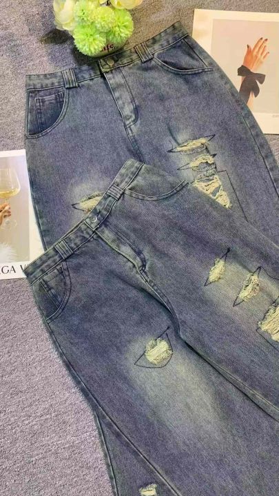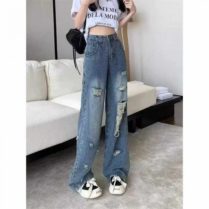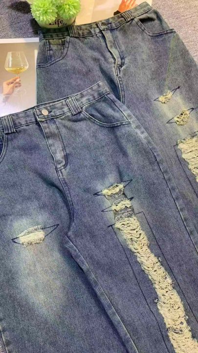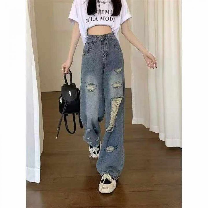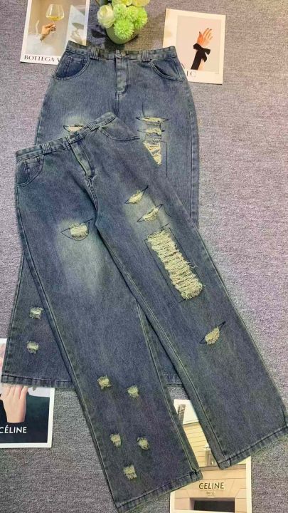 个性做旧破洞高腰直筒百搭牛仔裤,[爱心]95件左右,L码为主,码数S-L,穿80-120斤,万佳档口货,原包装️无瑕疵,[666]实体店品质