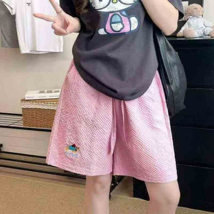 500件左右女装多巴胺刺绣夏季薄款泡泡纱速干宽松显瘦运动五分裤 ,单款5色 M L码 有口袋真抽绳,货品干净独立包装