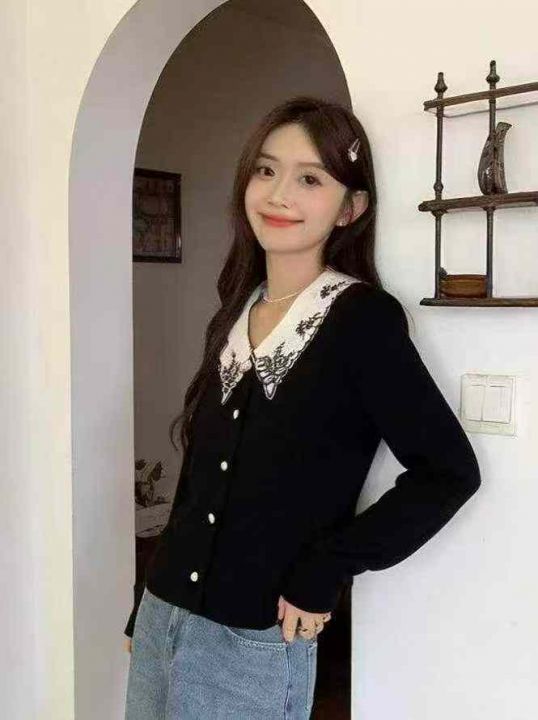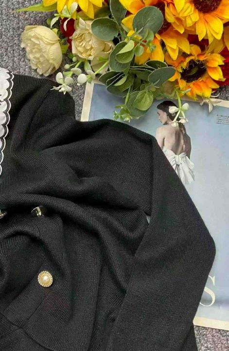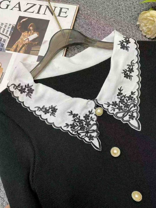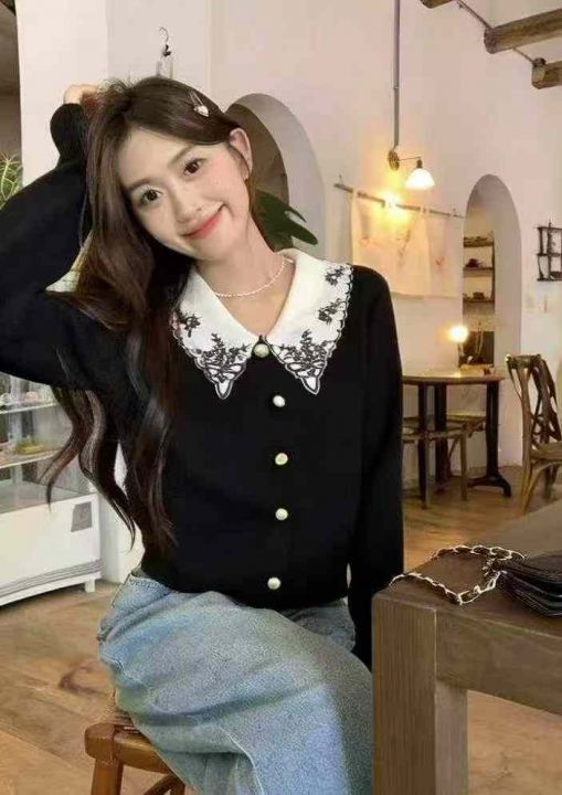 春季新款小香风韩版宽松撞色翻领长袖针织衫,独立包装...