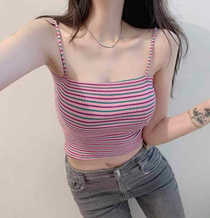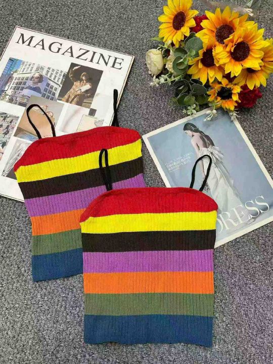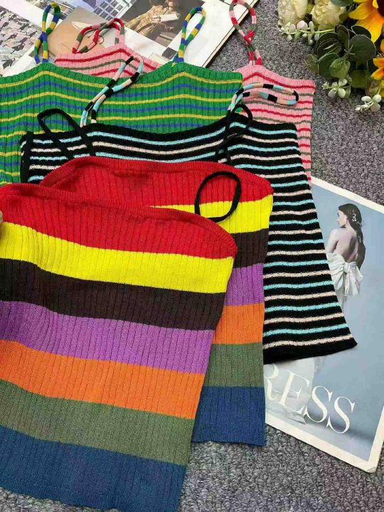 夏季新款彩虹条纹冰丝针织吊带,独立包装,均码面料柔...