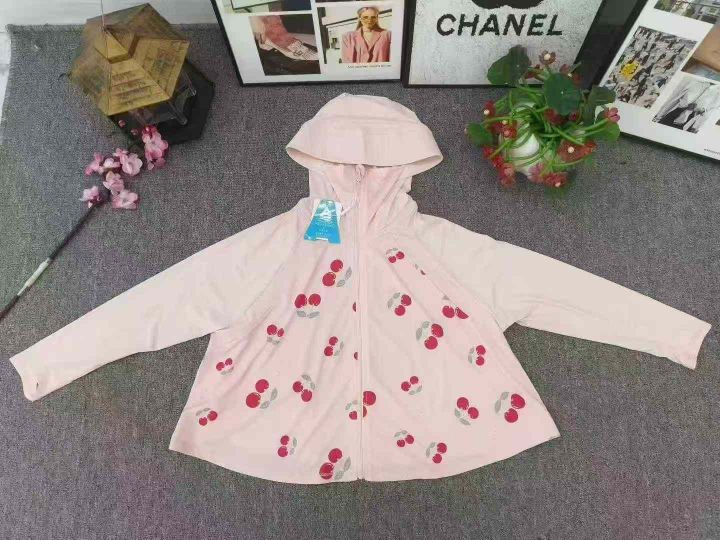 统一品牌童装印花防晒衣,数量1800件左右,尺码110--160,两个色,后领包边,锦纶氨纶面料,独立包装带吊牌,大货干净整洁质佳!模特图供参考