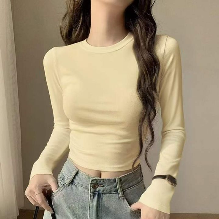 春秋新款外穿打底净版简约弹力修身显瘦弹力拉架棉长袖t恤上衣,独立包装,...