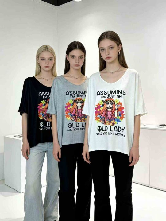 欧码女士嬉皮风印花短袖T恤,独立拉链包装,1500件,码数3XL-8XL