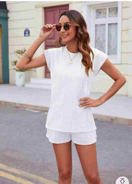 V领女夏季肌理感 短袖短裤两件套装 宽松百搭潮 独立包装,码数S-XL码,数量126套(货号406#12)