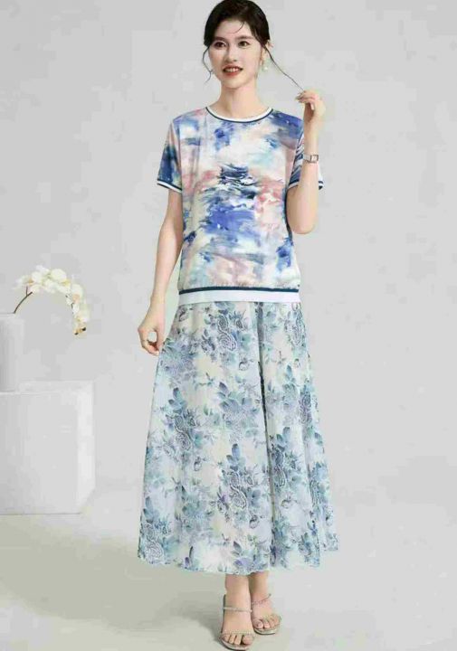 雪纺碎花妈妈连衣裙,7.8码数M一2xL,数量1059左右,五件一包装,商场下架...
