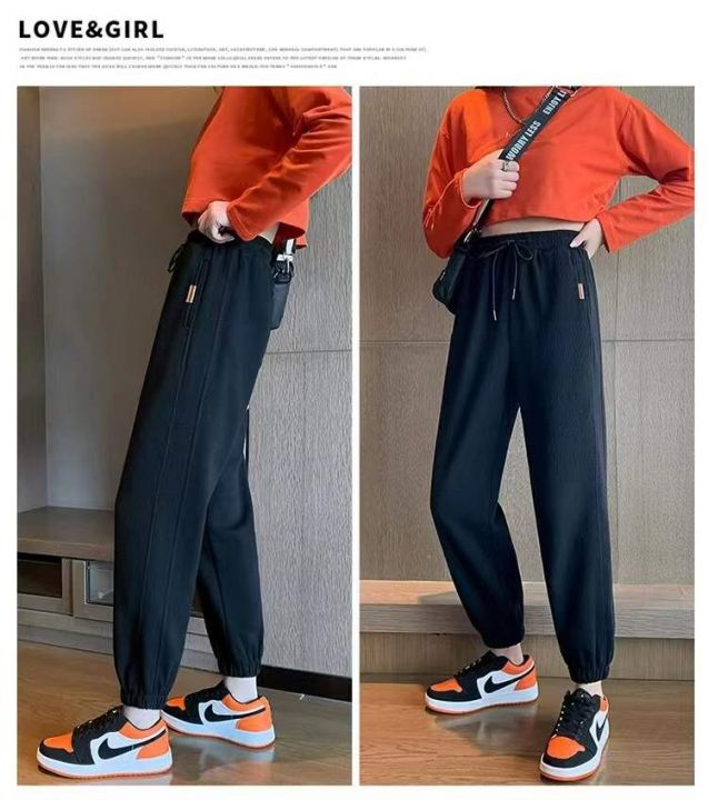 春季新款网红复古华夫格松紧腰休闲卫裤,独立包装带腰...