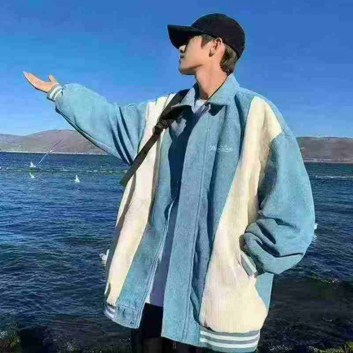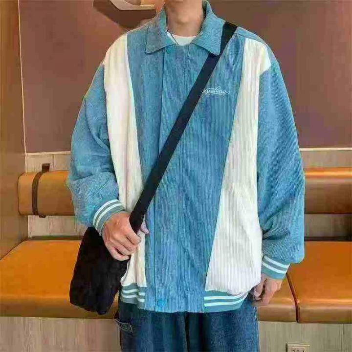灯芯绒外套男春秋季美式vintage潮牌复古宽松拼接撞色...