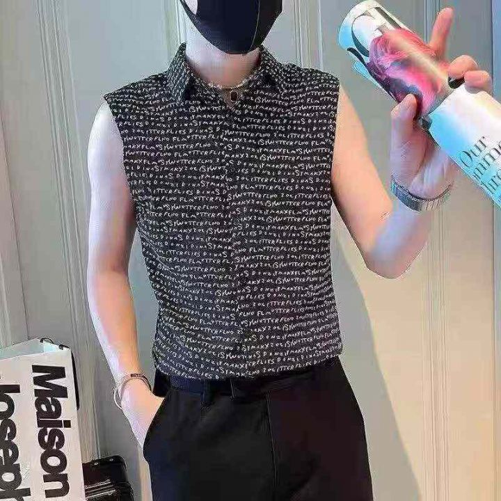 [月亮]:25年新款休闲痞帅无袖纽扣衬衫