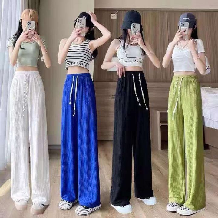 ☕️夏季冰丝阔腿裤名媛慵懒风抽绳高腰纹理春季新款宽松垂感直筒休闲裤1632条全清7.8元,分货8.8元 均码,2个款图片颜色,独立包装[庆祝][庆祝][庆祝]
