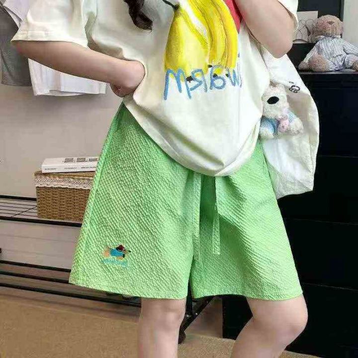 500件左右女装多巴胺刺绣夏季薄款泡泡纱速干宽松显瘦运动五分裤 ,单款5色 M L码 有口袋真抽绳,货品干净独立包装