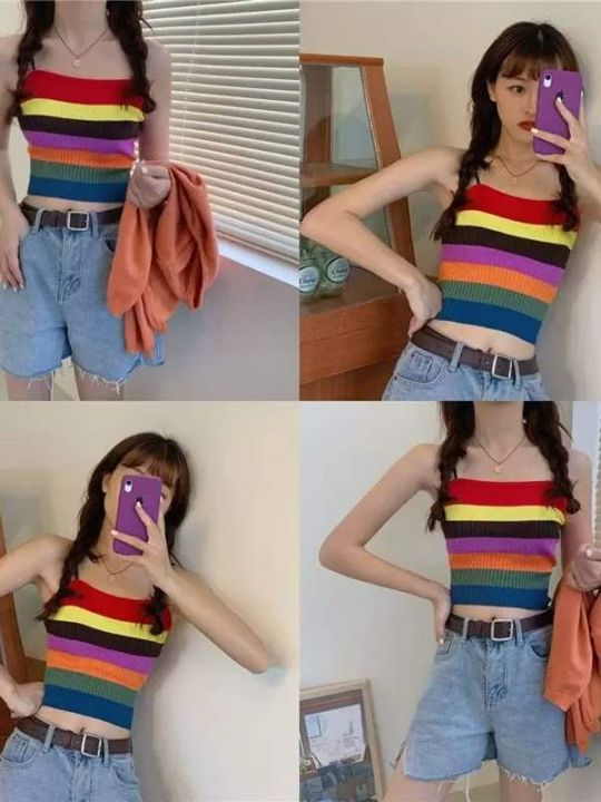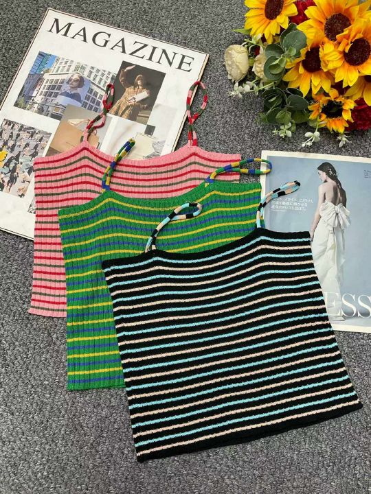 夏季新款彩虹条纹冰丝针织吊带,独立包装,均码面料柔...