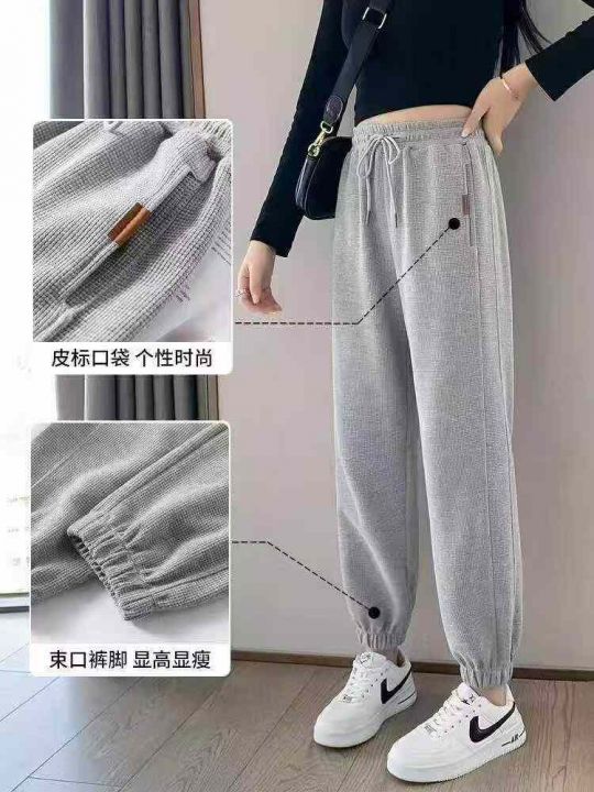 春季新款网红复古华夫格松紧腰休闲卫裤,独立包装带腰...