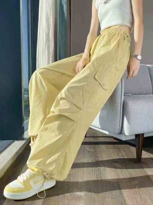 女工装裤夏季薄款宽松高腰直筒休闲美式运动时尚女伸缩...