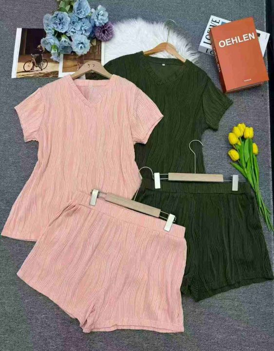 V领女夏季肌理感 短袖短裤两件套装 宽松百搭潮 独立包装,码数S-XL码,数量126套(货号406#12)