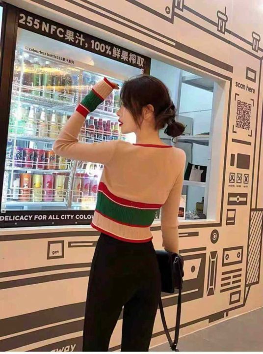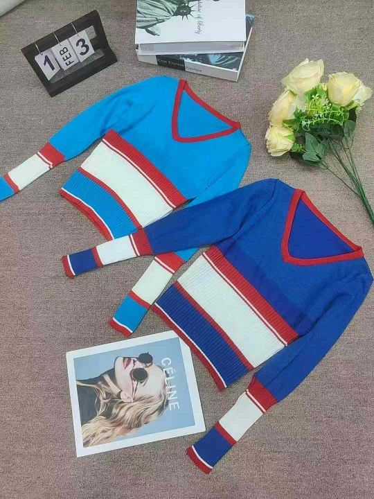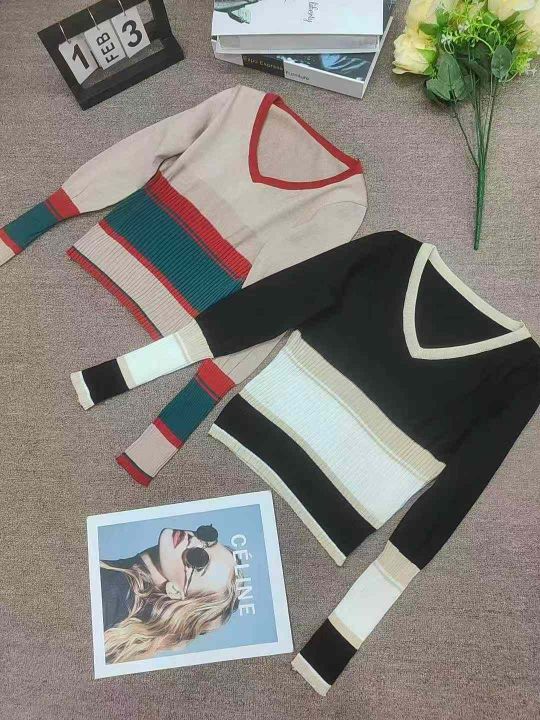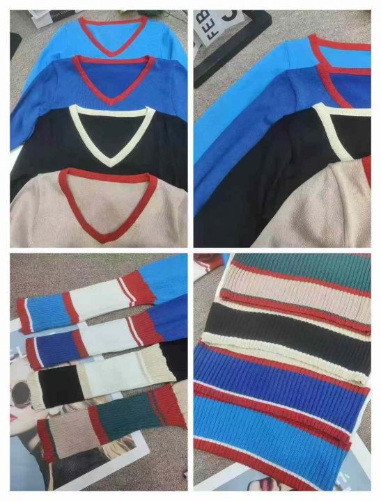 高腰内搭打底修身早秋V领针织衫长袖上衣,独立包装,...